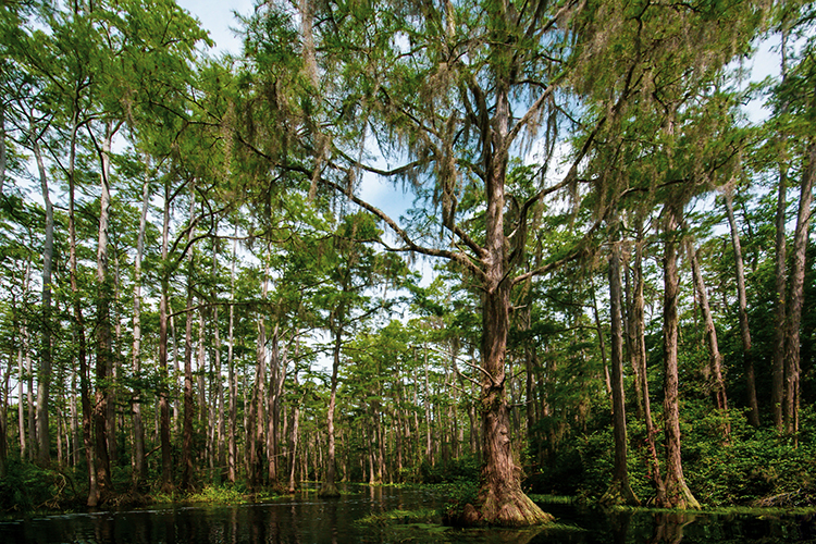 The Bald Cypress is a wetland tree that is characterized by its needlelike leaves and cypress knees that are a part of the root system that can be seen above ground. Bald Cypress can live at least 600 years and some up to 1000 years. These trees provide nesting areas for wading birds like herons and egrets. They are also a host plant for the Sphinx Moth.